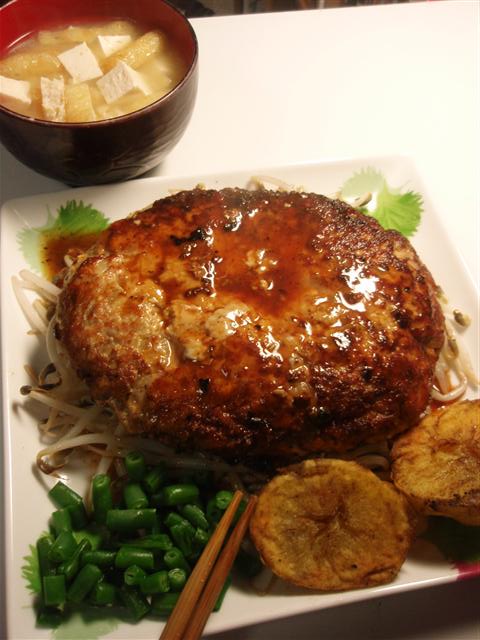 ヘルシーに豆腐とひき肉1:1で、その他もろもろを混ぜて気付けば500gにもなっていた… 想像してみてほしい。 手のひらに収まりきらない大きさの種を… 凄い食べ応えのある豆腐ハンバーグになった。 また今回入れた麩には肉汁を保つ効果があるので、長時間焼いても肉汁が逃げずじゅわ~っとする。 パン粉でも良いが、なんとなく麩のほうが保湿効果が高い気がした。 気のせいかもしれないが。 <スポンサードリンク> 【豆腐ハンバーグ(500g)】 ・豆腐 200g ・豚挽き肉 200g ・玉ねぎ 1/2個 ・車麩 1個 ・卵 1個 ・もやし 1/2袋 ・インゲンの冷凍したもの 適量 ・ジャガイモ 1個 ・オリーブオイル 大匙2 ・ナツメグ 適量 ・塩コショウ 適量 ・黒胡椒 少々 ・白ワイン 大匙3 ・ケチャップ 大匙2 ・とんかつソース 大匙1 1.豆腐をキッチンペーパーで包んでレンジで2分チン。玉ねぎはみじん切りにしてオリーブオイル大匙1で透き通るまで炒め、ボウルにとって冷ます 2.1の豆腐をぐちゃぐちゃに崩して水を抜く。車麩は袋にいれてから粉々に砕く 3.1,2と豚挽き肉と卵を大きなボウルに入れてかき混ぜる。途中でナツメグと塩コショウ、黒胡椒をいれる。混ぜたらまとめて冷蔵庫でしばらく寝かす 4.玉ねぎを炒めたフライパンでもやしを炒め、塩コショウで味付けして皿に敷く 5.フライパンを水でさっと洗って乾かし、オリーブオイル大匙1を広げ、ハンバーグを焼き始める 6.ひっくり返したら、蓋をして弱火でじっくり焼く 7.ジャガイモの皮を剥き、ラップで包み3分チン。それから半分に割って、フライパンの空いたスペースに切り口を下にして入れて一緒に焼く 8.途中でジャガイモを取り出す。冷凍したインゲンをレンジで解凍しておく 9.ハンバーグの真ん中に串をさしてにごった汁が出なくなるまで焼く 10.焼きあがったらハンバーグを皿に盛り、焼汁の残ったフライパンに白ワイン、ケチャップ、とんかつソースを入れて火にかけて、ソースを作る 11.ソースをハンバーグにかけて完成。じゅわ~っとウマー PR ▽▼▽美味しそうだと思ったらクリックお願いします▽▼▽ ![]() ▲△▲美味しそうだと思ったらクリックお願いします▲△▲ ● コメントフォーム |