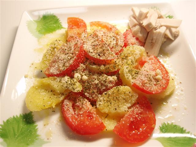 トマトとポテトのサラダは、たまたまちら見した料理本に載っていたのを参考にイメージでアレンジしてみた。