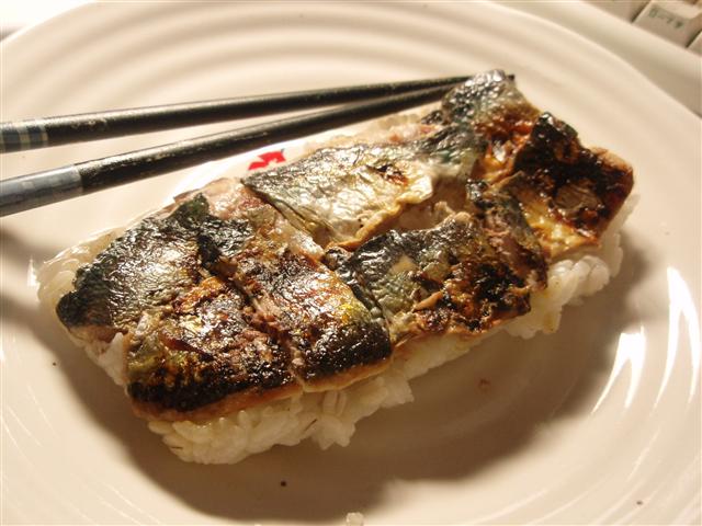 【焼き秋刀魚の押し寿司】昔、焼き鯖の押し寿司というのがコンビニで出たことがある(いまもあるのかな?)