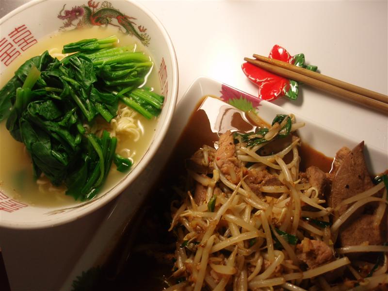 【ほうれん草ラーメンとレバニラ】少し風邪気味ということで、スタミナをつけようと思い