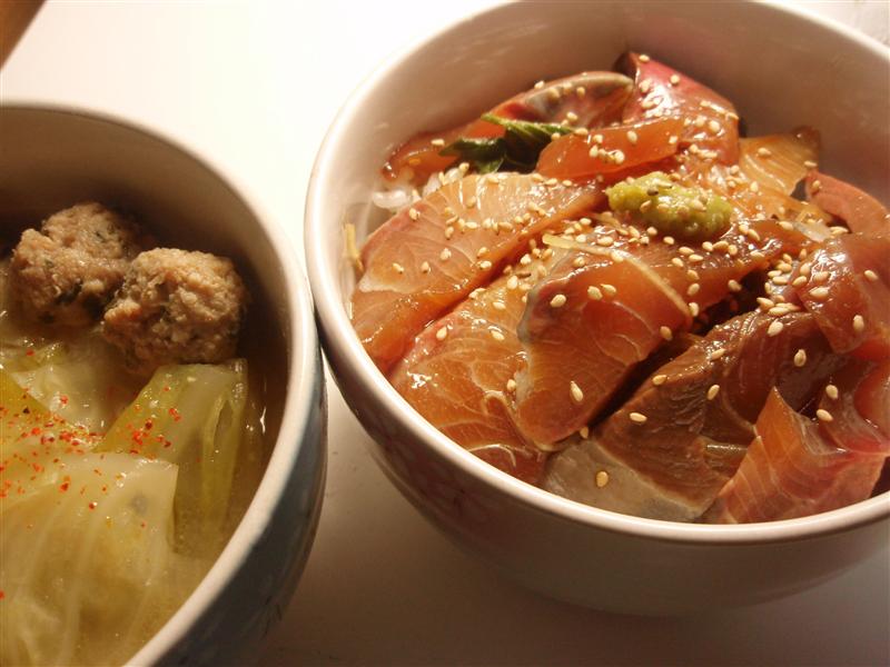 【漬けハマチ丼】ハマチの刺身が安かったので、漬け丼にしてみた。