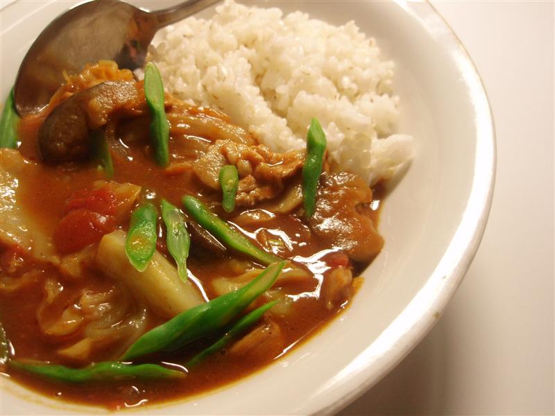 【キャベツとナスのカレー】クリスマスの残り物で料理の第2弾である。