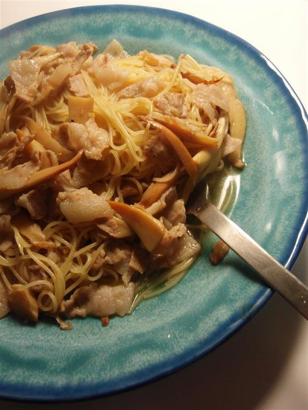 【きのこと豚肉のパスタ】正月も過ぎ、ようやく普段の生活が戻ってきた。