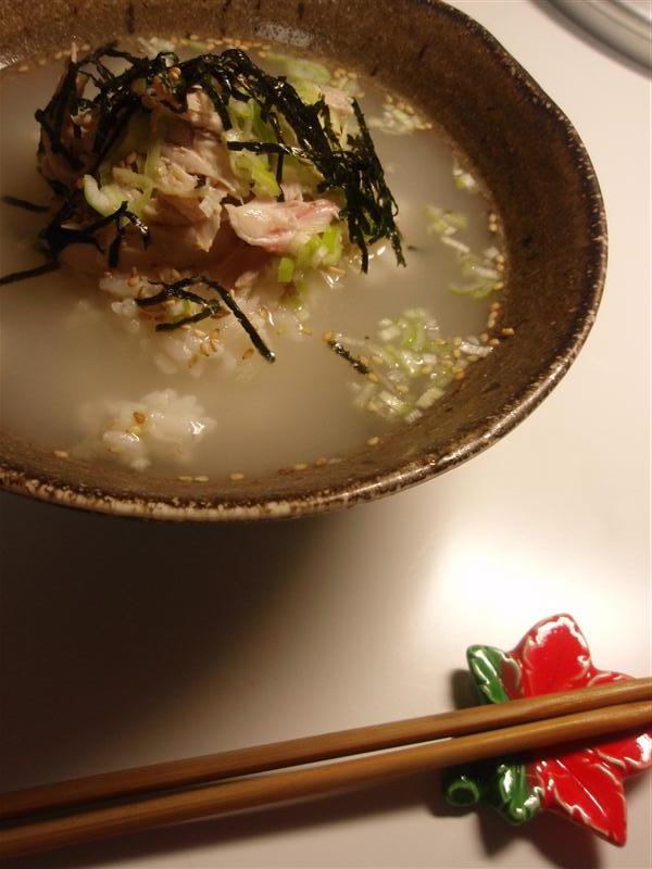 【鶏出汁茶漬け】クリスマスのローストチキンの骨を使って、出汁をとった。